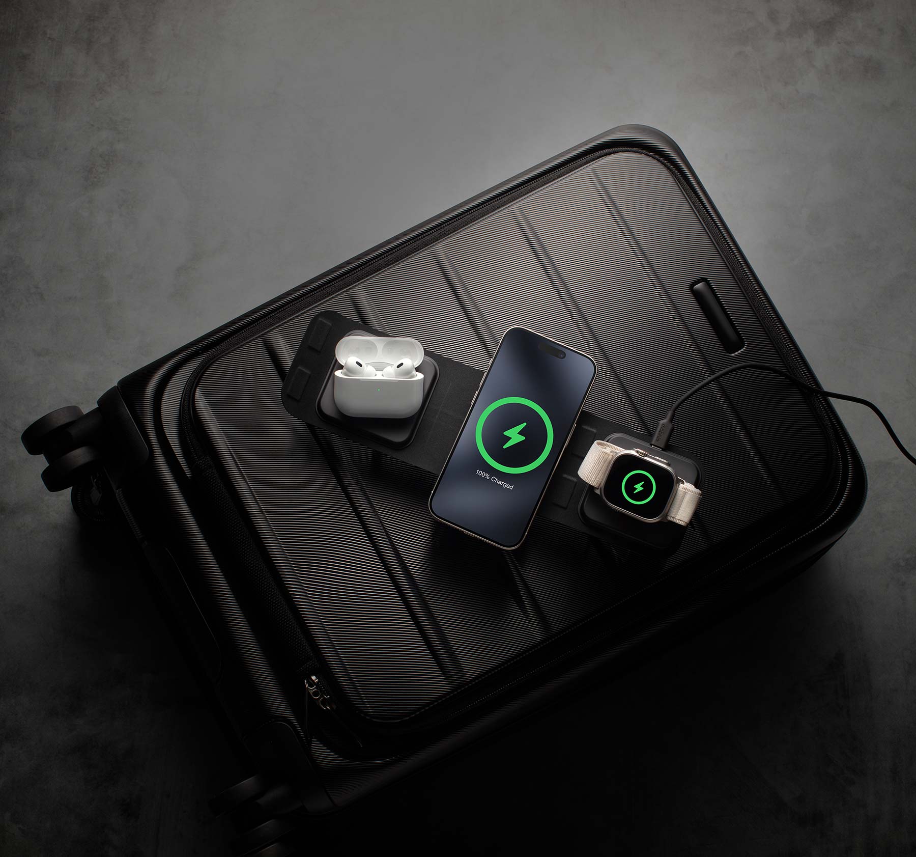 Keeping all your devices charged while you travel just got easier. The 3-in-1 Wireless Travel Charging Station with MagSafe has dedicated charging spots for all your main Apple devices. You’ll stay charged on vacation or during a business trip. And when you’re ready to head back home, it all packs up neatly in a premium, convenient travel case.